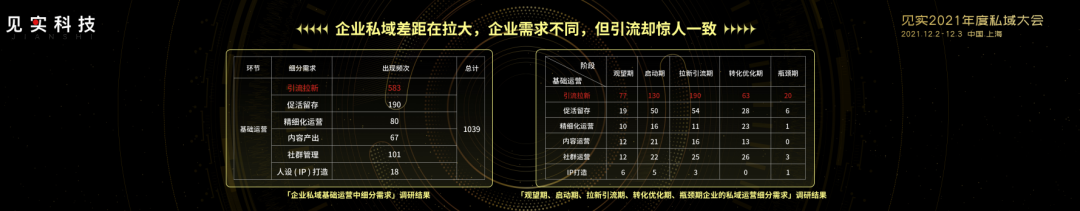 从报告数据看,无论什么企业,处在私域运营的哪个阶段,引流拓客都是企业私域运营的核心需求,这一点与我们有机云的客户需求洞察不谋而合,只有不断为私域流量池补充新鲜血液,才能不断提升私域池的价值。