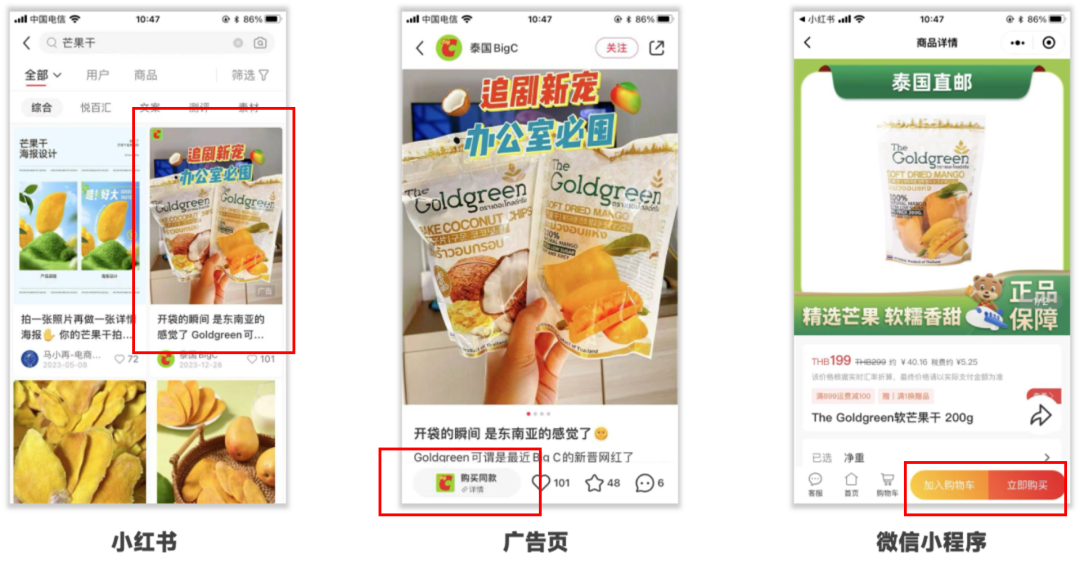 不仅是淘宝,最近小红书也有动作,在小红书的广告中支持直接跳转到微信小程序。