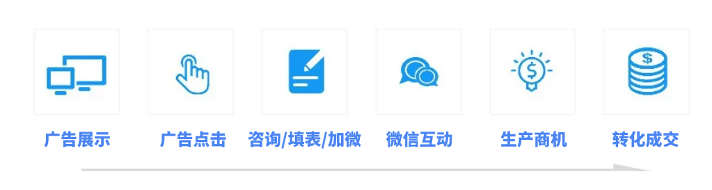 通过广告投放获得线索,继而获客成交,这种传统的获客模式相信大家都十分熟悉,流程大致可以总结如下。
