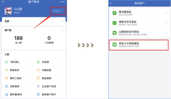 (2)将名片分享到微信:使用场景:适用于需要添加微信好友为企业微信客户的场景。