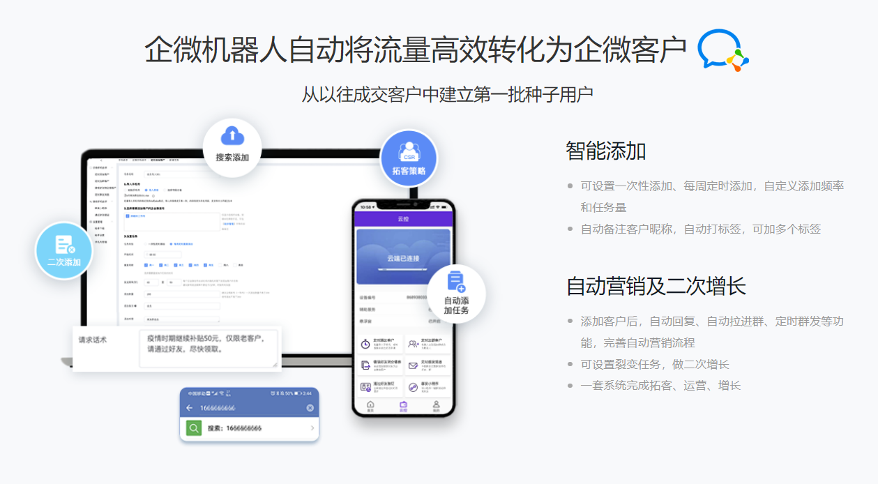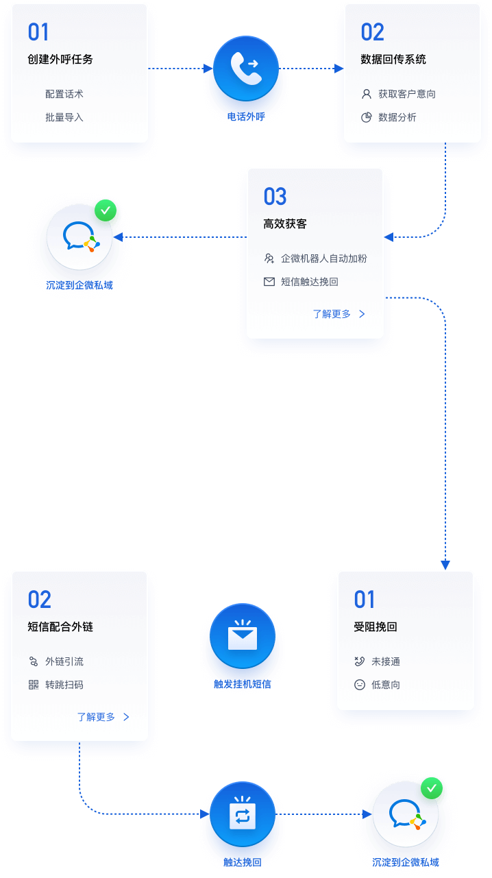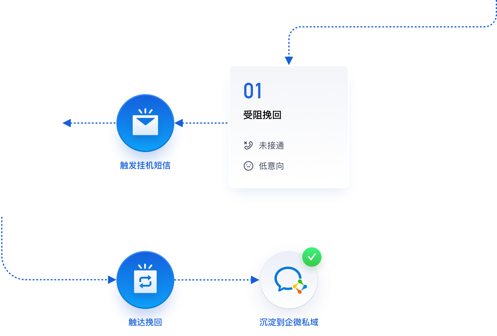 · 自动加微意向用户,短信挽回未接通、无意向用户
